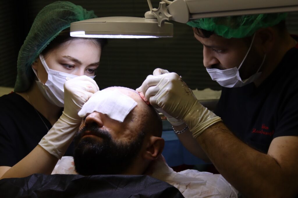 Na het oogsten van de grafts en het openen van de kanalen worden de grafts op de nieuwe plek geplaatst. Ons team is zeer deskundig en ervaren om het hoogst aantal haalbare multigrafts uit het donorgebied te halen. Des te meer haren we kunnen verplaatsen, des te beter de dichtheid.